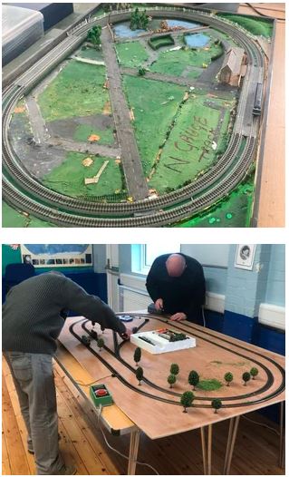 The group accommodates train enthusiasts with limited space at home, utilizing mostly donated stock for various elements like trains, buildings, bridges, and people.